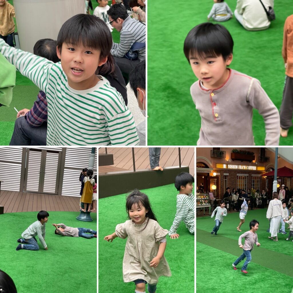 芝生広場でたくさんの子供達が遊んでいて、そうたたちもテンション上がりまくり。