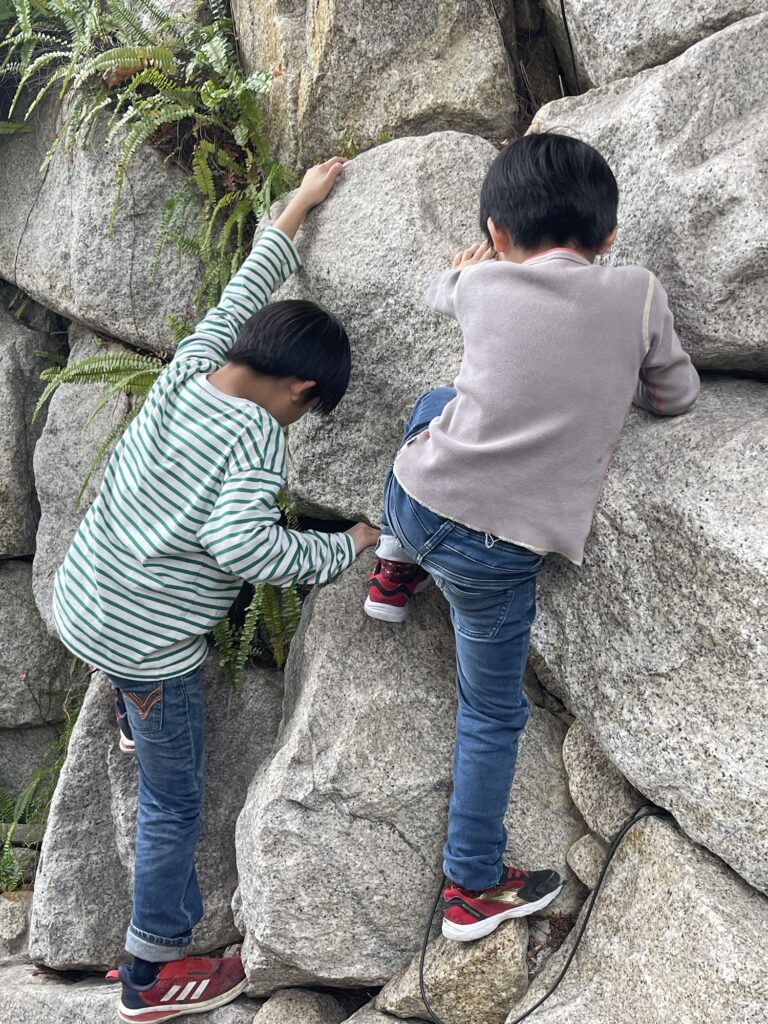 石垣があればすぐに登る2人。