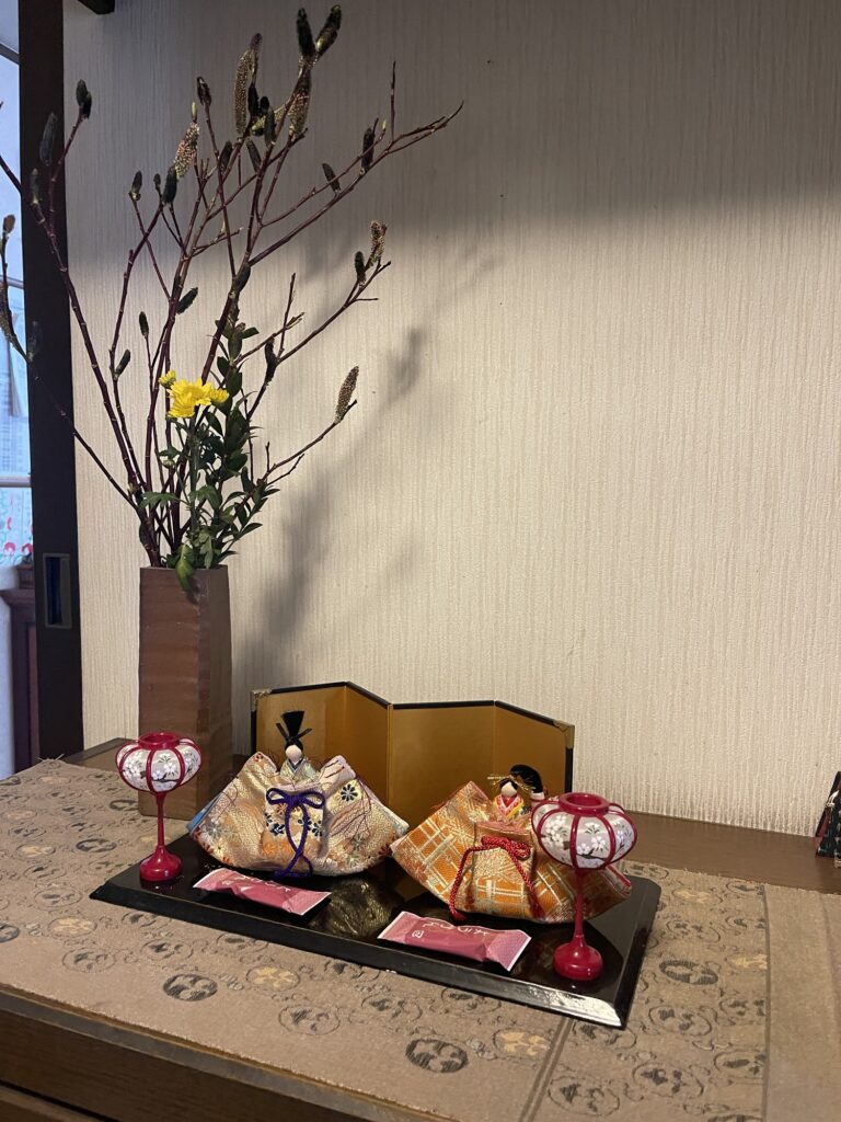お雛様と一緒に立てたお花も素敵。