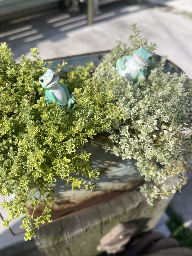 2種類のタイムの上でカエルさんがのんびり〜