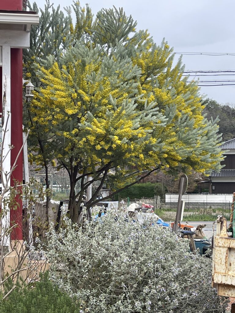 ブラーノ東側のミモザは、レモン色のお花と、シルバーの葉が爽やか。