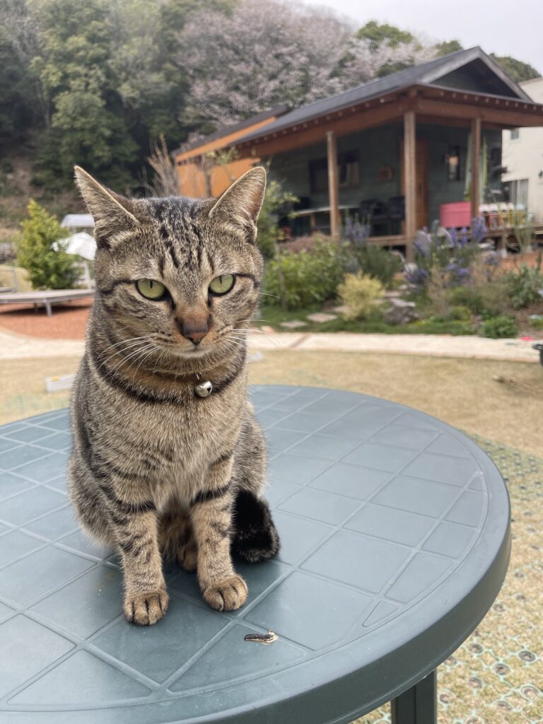 私がお花を積んでいると、雨の中でも付いてきてくれるぽこちゃん。濡れちゃうよ〜!