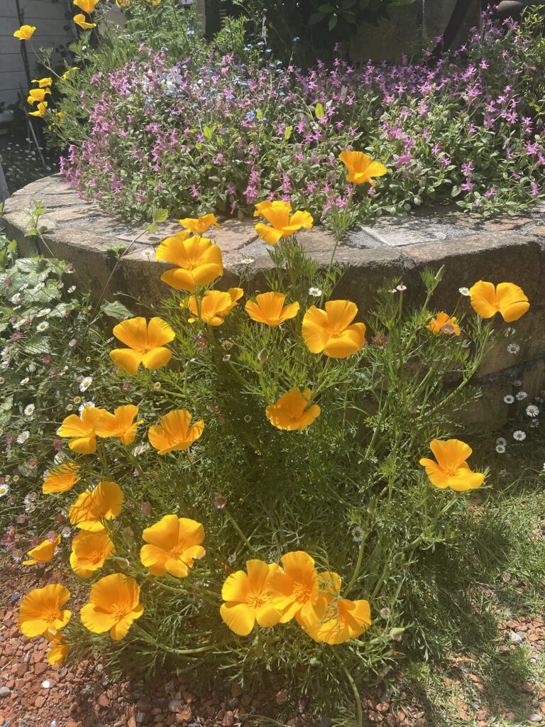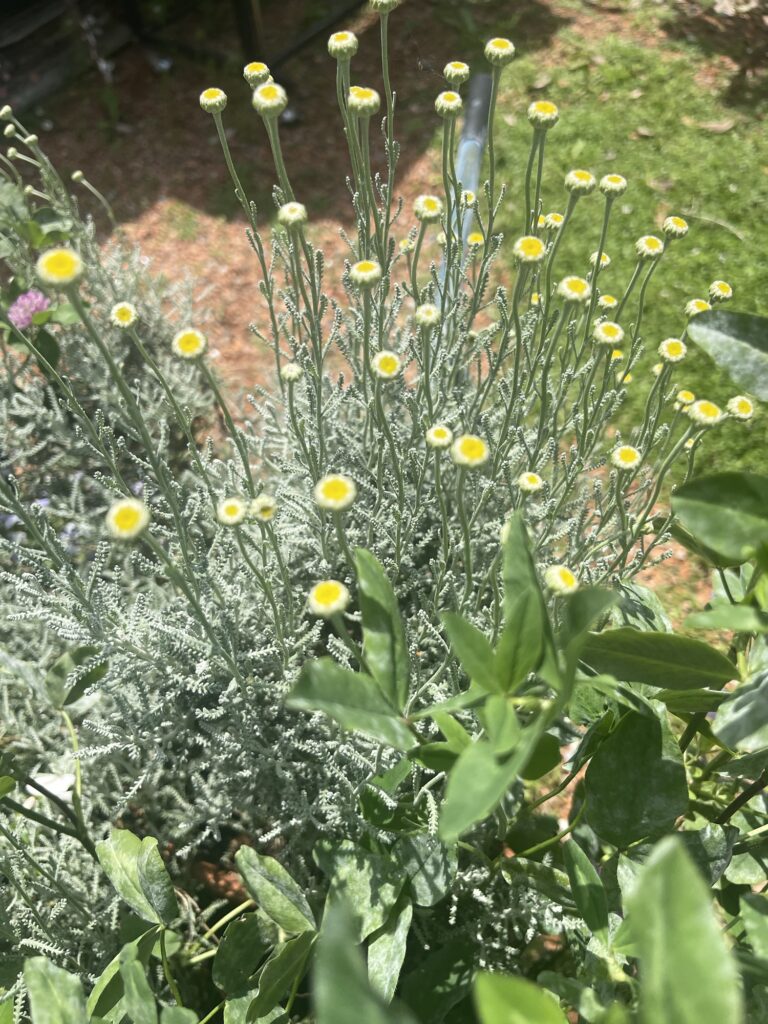 シルバーのハーブ、サントリナも今年はいつもより多くお花が咲き始めてます。