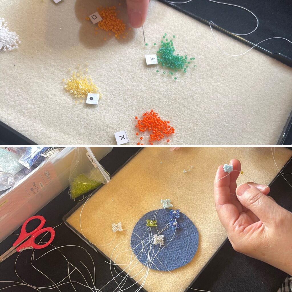 今日はブラーノ1階でビーズ教室、2階で編み編みクラブがありました。