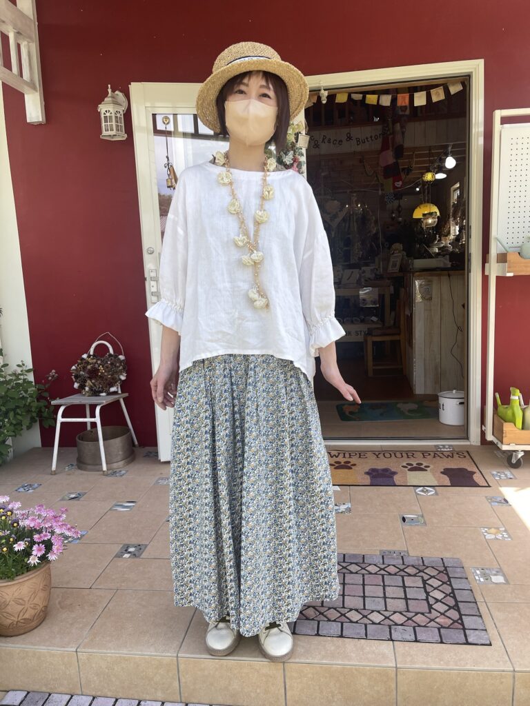 スカートはトップスとアンサンブルなんだって。そんなの欲しいなあ。