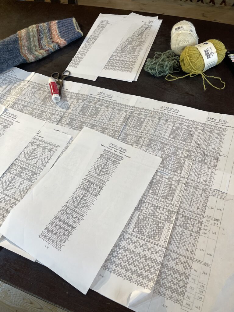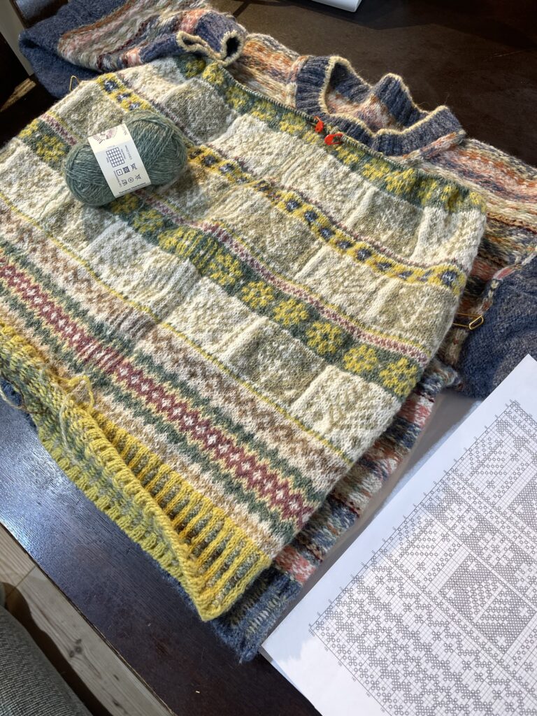 今日は☔️。子供達も滋賀に行ってて、誰にも邪魔をされることなく思い存分編物ができました。気になっていたフェアアイルのカーディガンを前に編んだセーターに合わせてデザインを考えながら編んでます。