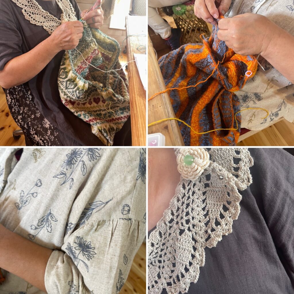 今日はブラーノザッパでフェアアイル教室がありました。先日お買い上げの刺繍ブラウスが素敵です。