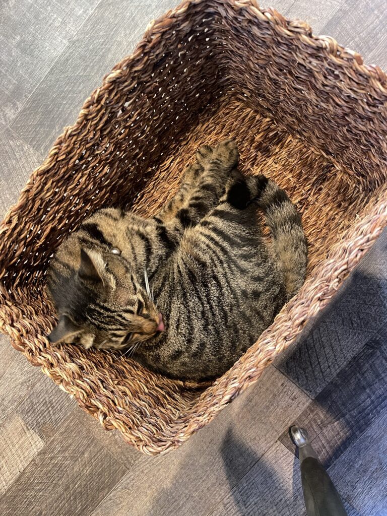 カゴの中で毛づくろい。