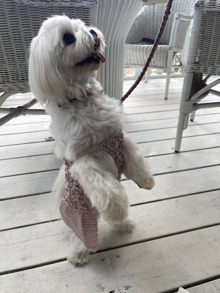 かわいい〜🩷かぎ針編みのお洋服はお母さんとお揃いなんだって。