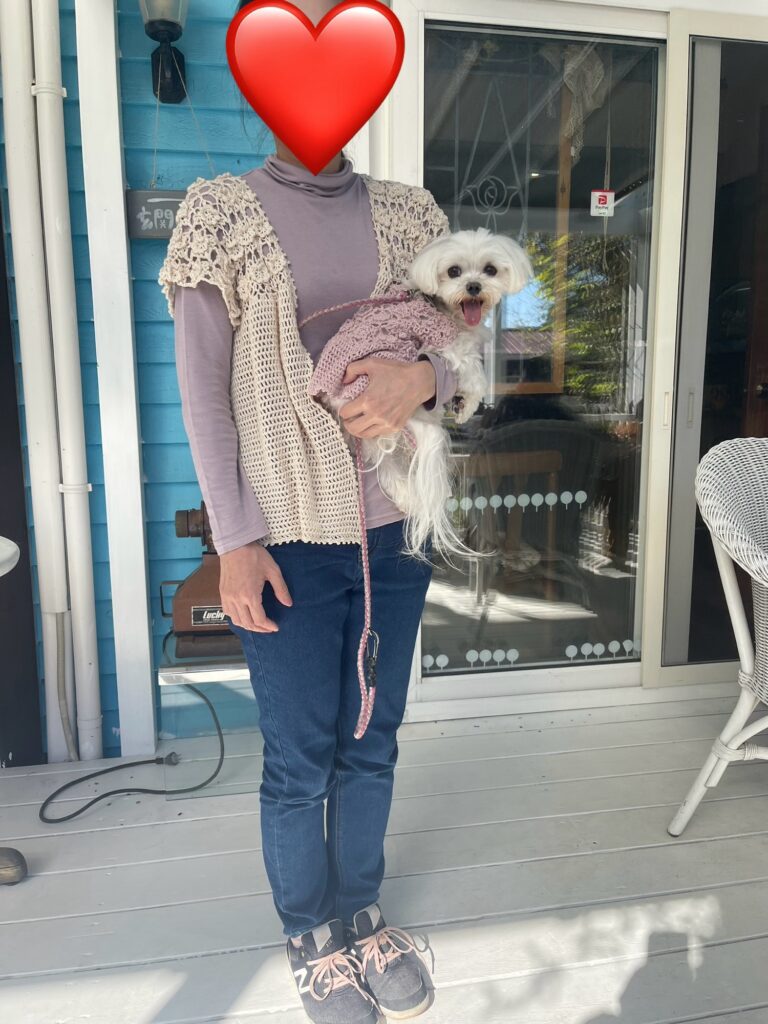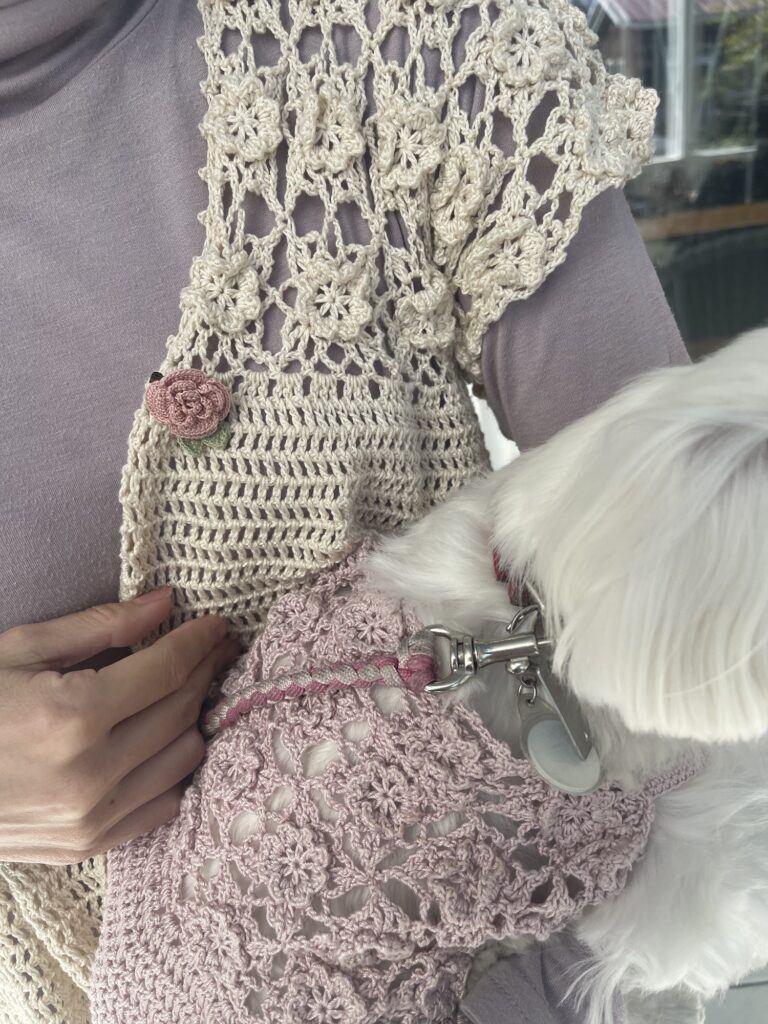 モチーフ編みがミミコちゃんとお揃い。