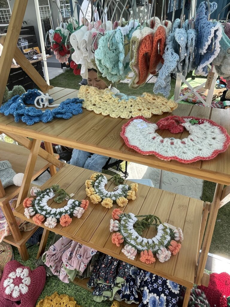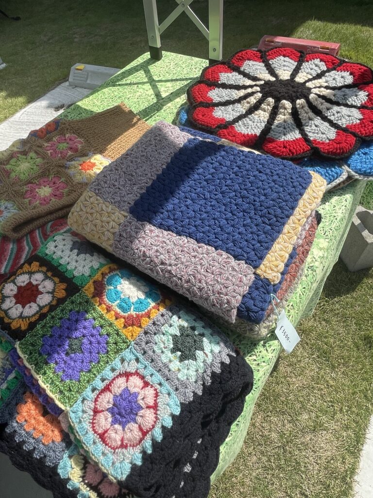 手編みのワンコグッズを販売していた方は岡山から来られたそう。レトロな色合いがかわいい💕一人でたくさん編まれててすごいなあ。