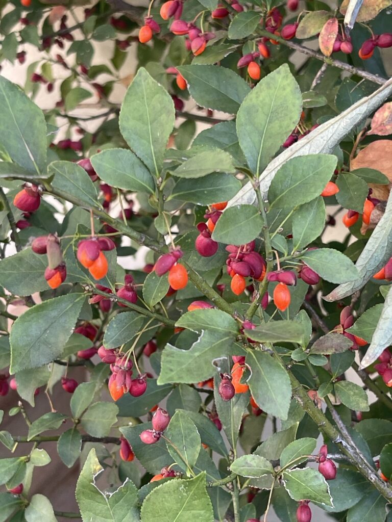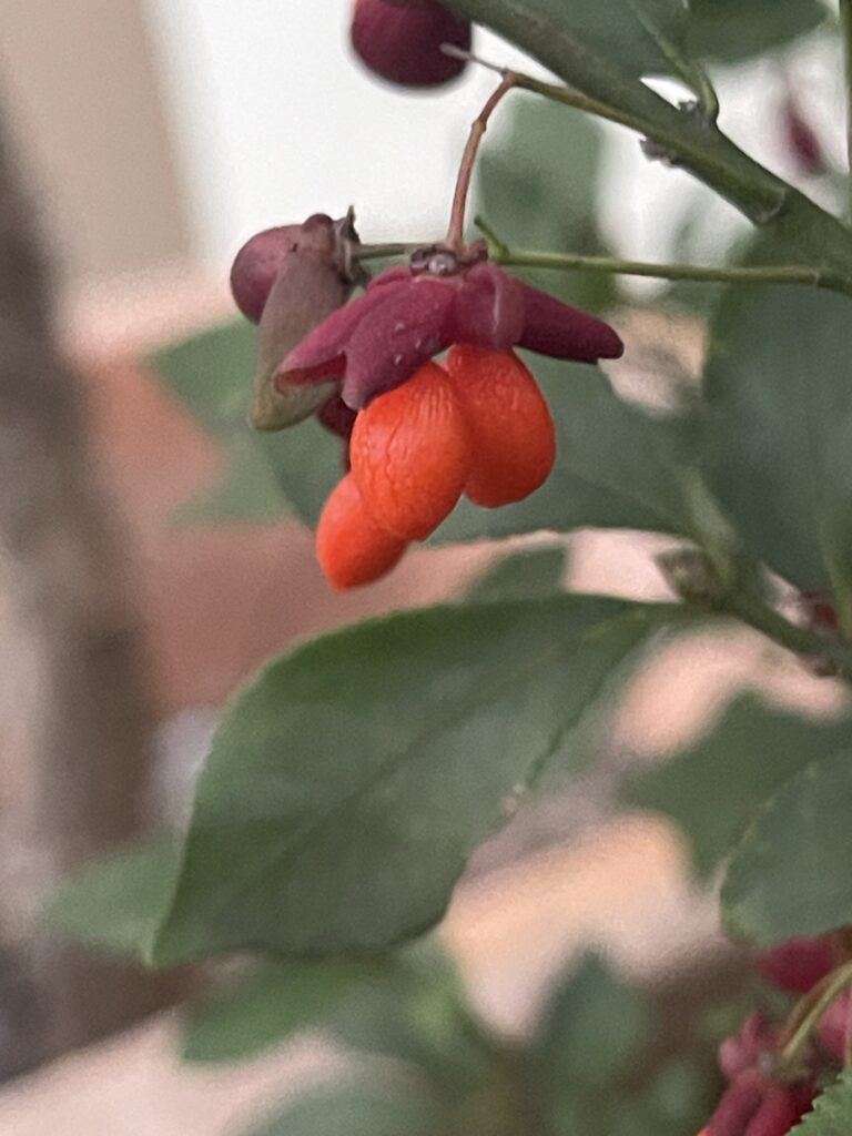 セイヨウマユミの赤い実が鈴なり