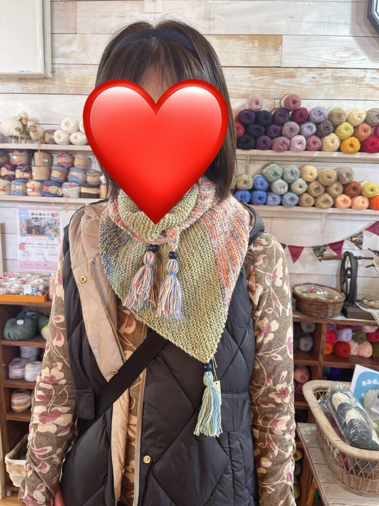 今日はグリーンのスヌードを気に入って下さいました。
