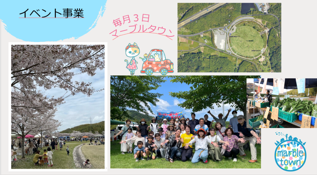 2019年10月 イベントを企画運営するグループ、マーブルタウン事務局を作り、桜山公園にて毎月3日に「マーブルタウン」というイベントを開始
