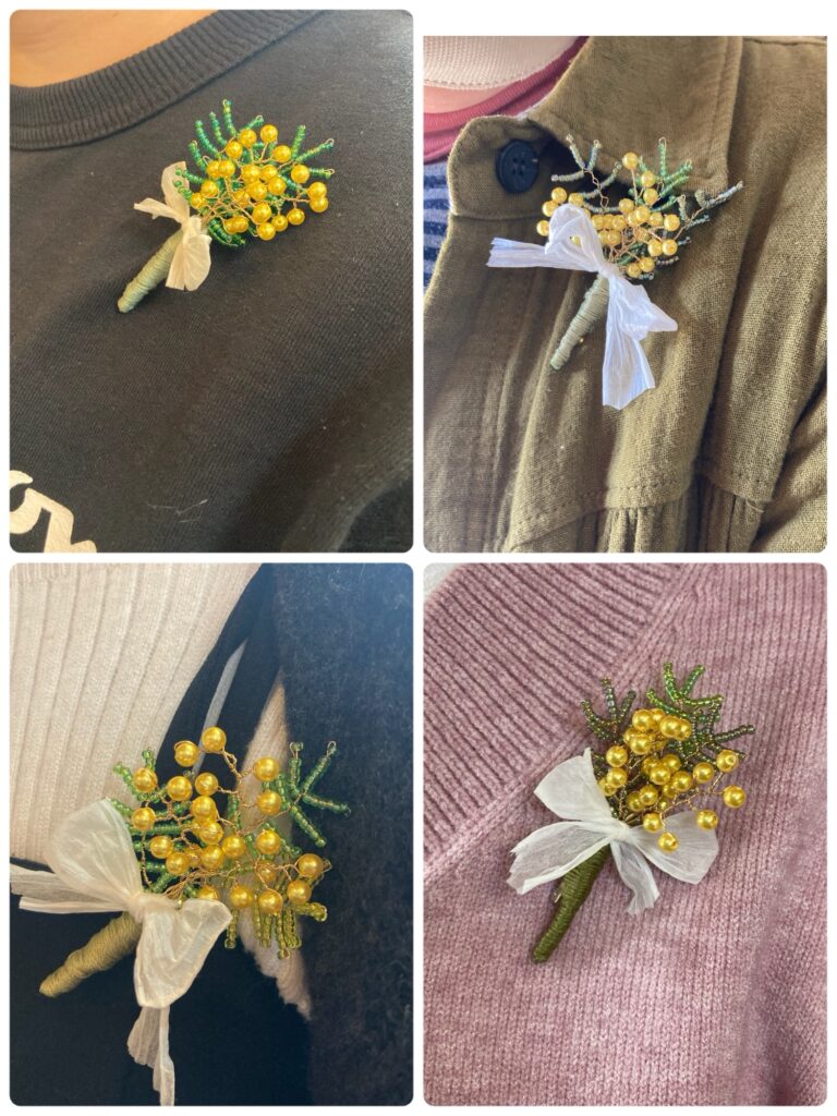 今日も昨日に引き続きぴよこ先生のミモザブローチのワークショップがありました❣️