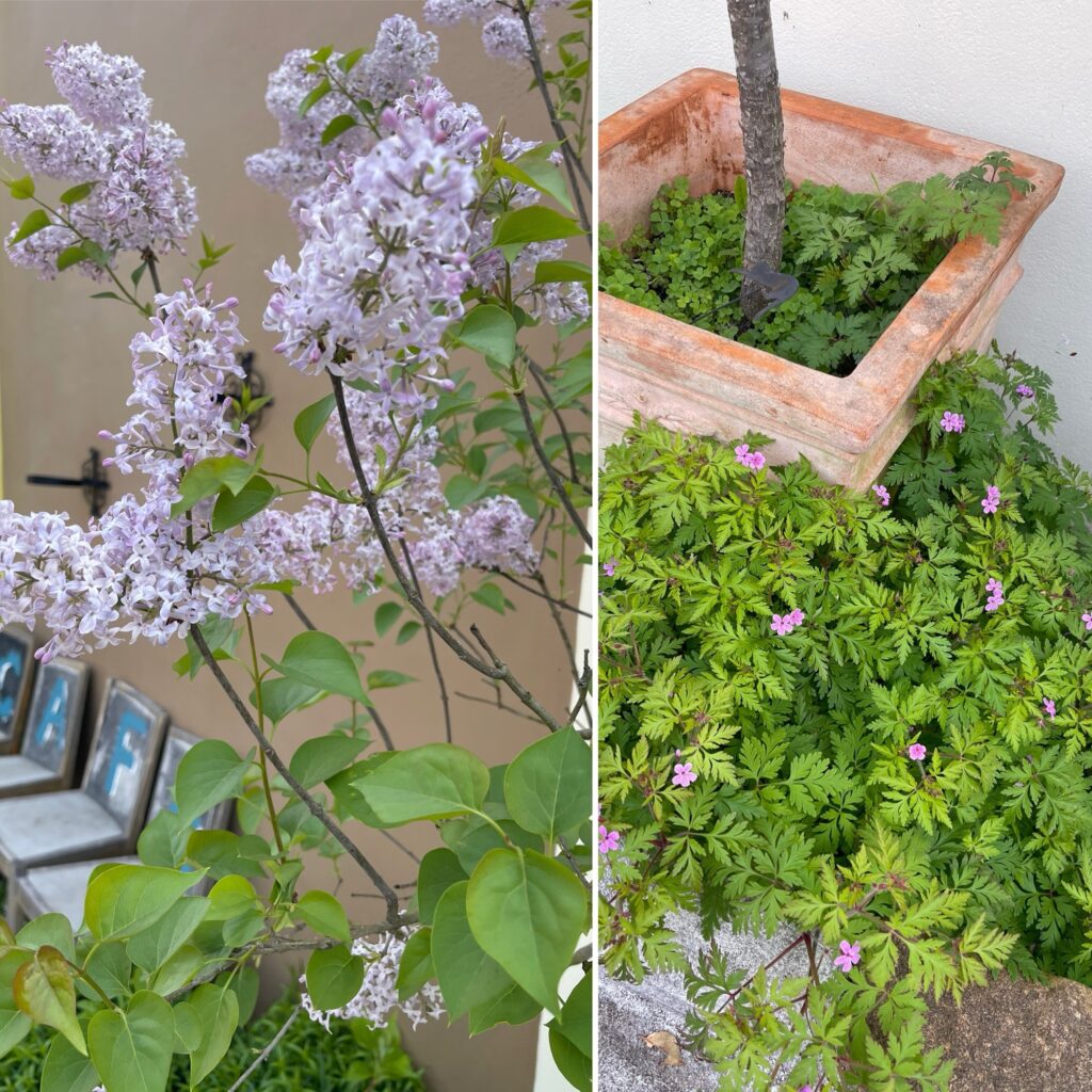 足元にもこぼれ種でゲラニウム ゲットロビン。雑草のように増えるヒメフウロソウ
