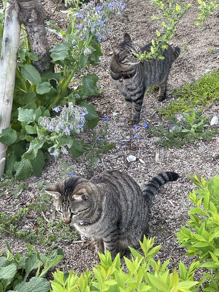 花壇の中で遊ぶてことぽこ。