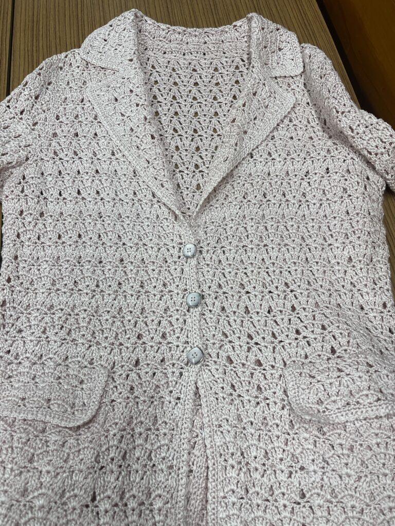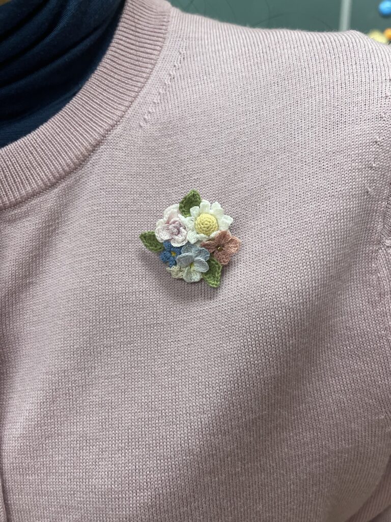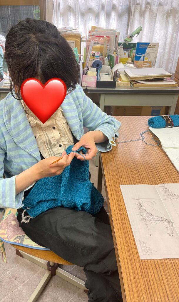 あきこさんもけいこさんもかぎ針編みのプルオーバーを頑張って編んでます。