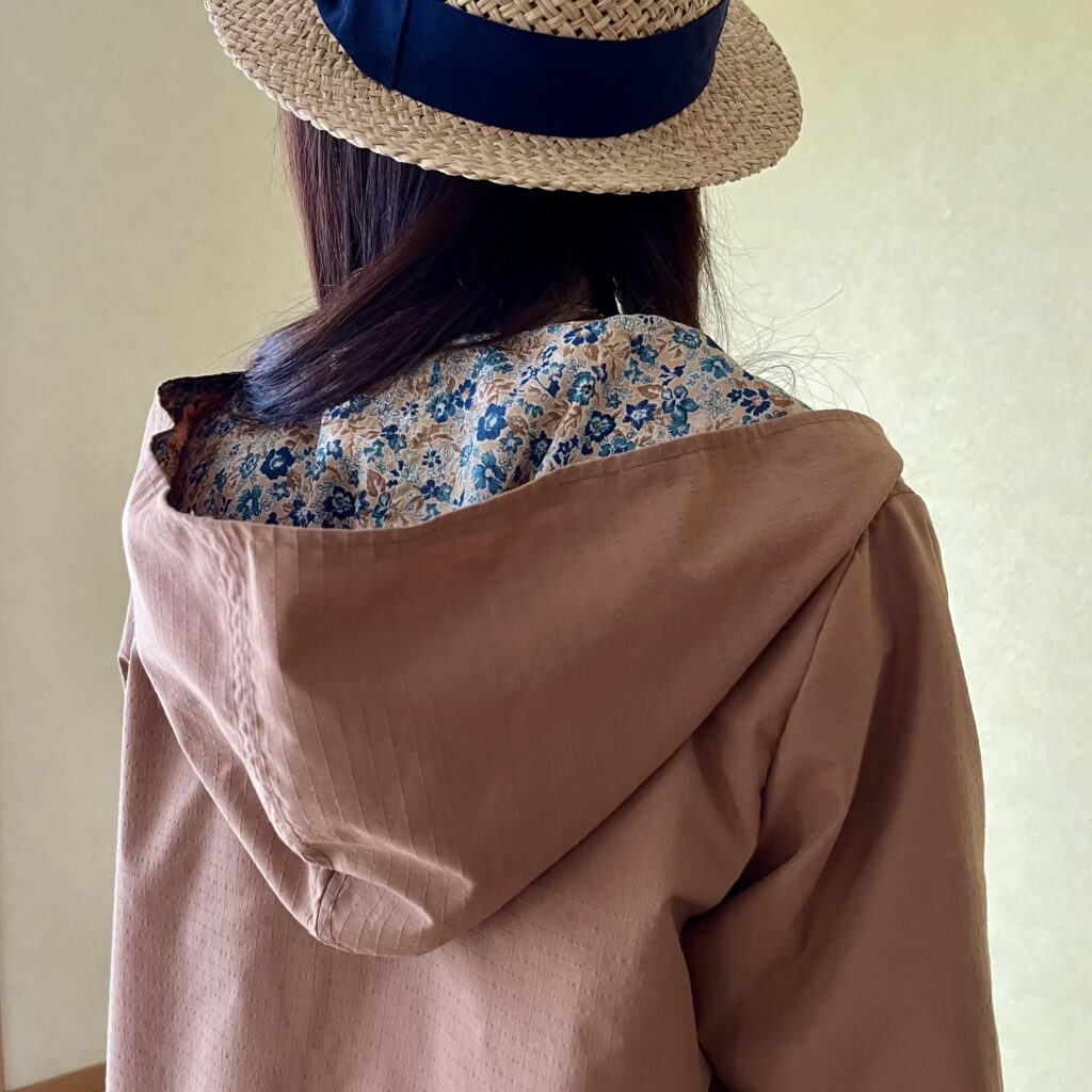 フード付きで、首回りの冷えや日差しからもしっかり守ってくれます。