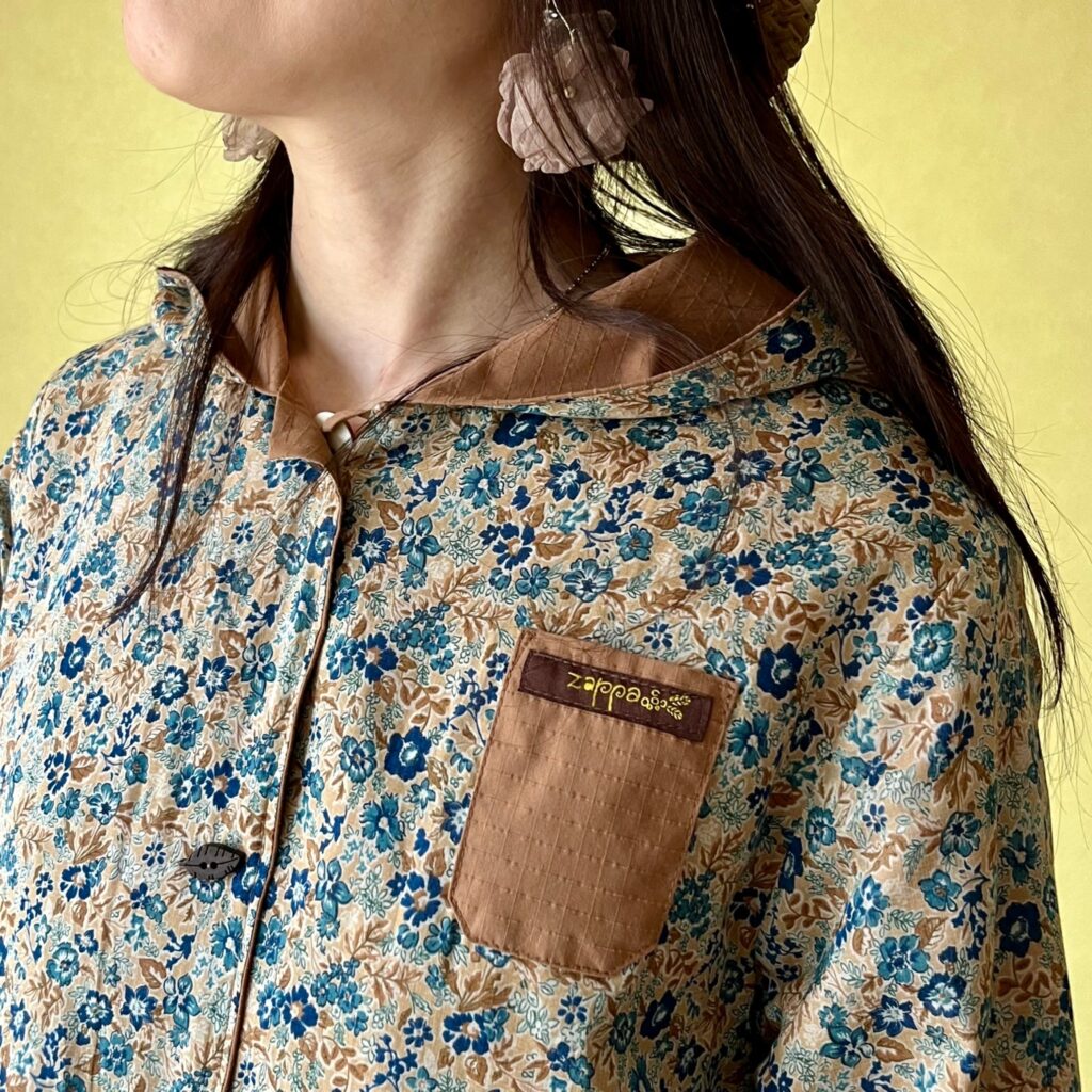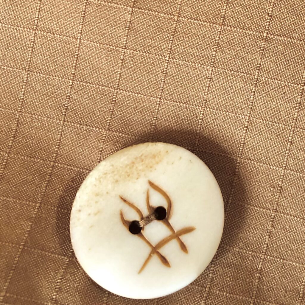 天然素材の牛骨ボタンをフロントに、反対側は飾りボタンとして木製のボタンを施しました。