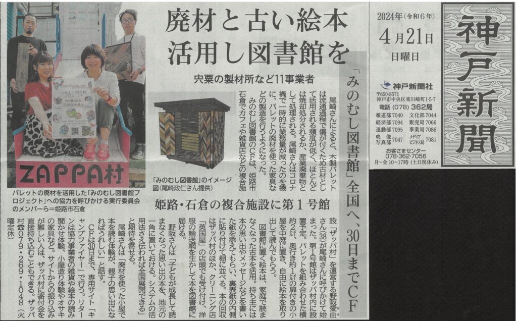 みのむし図書館|新聞|神戸新聞に掲載されました♪