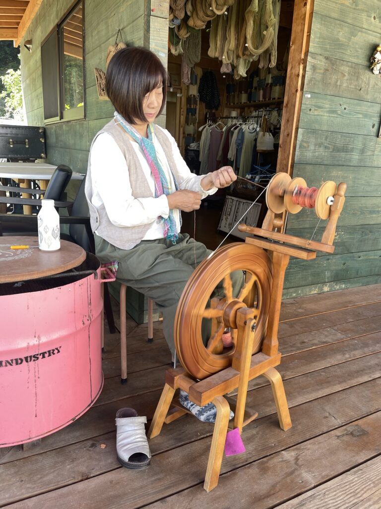 お客様の子供達が興味を持って集まってくれて、糸巻きしながらいっぱいお話ししてくれました。