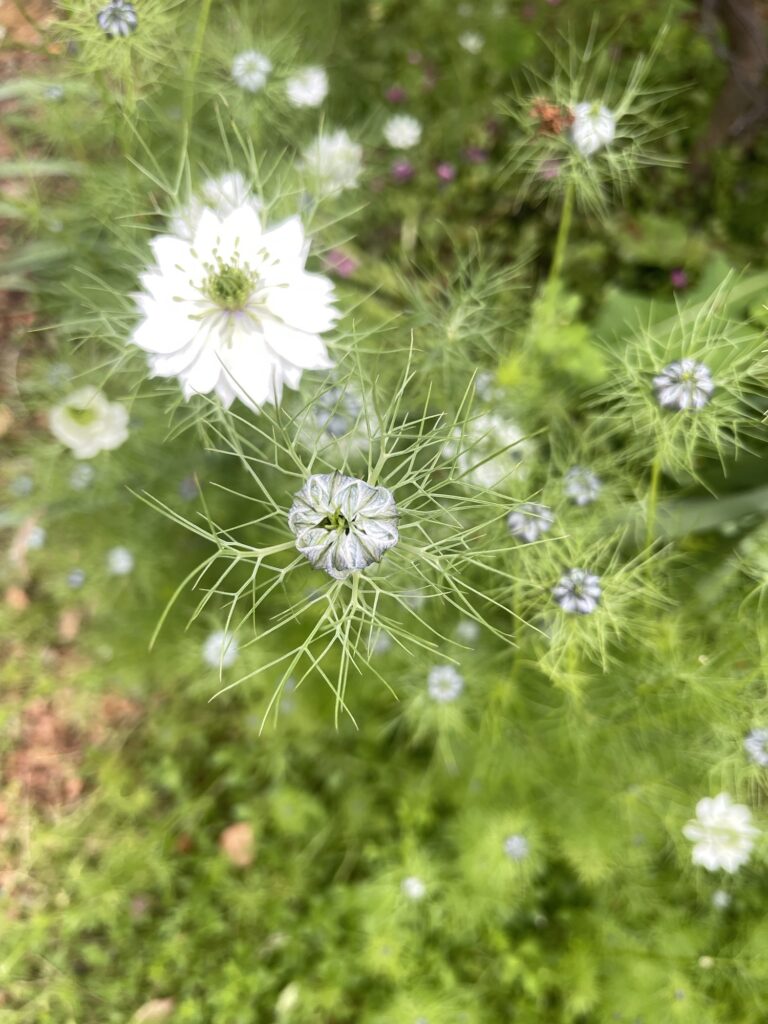 白いニゲラ。霧の中の恋人という和名のロマンチックな花