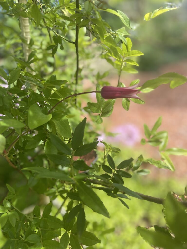 ザッパのお庭に帰ってきたら、クレマチスのプリンセスダイアナが咲いてました。かわいい💕
