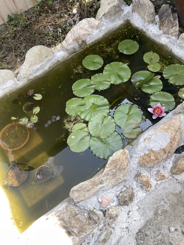 メダカの池も手作り。