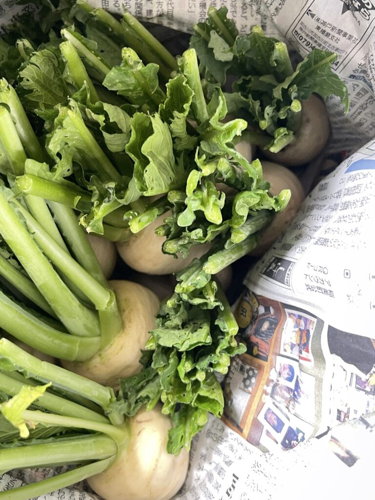 近くの施設で採れた新鮮なお野菜も届きました。はらっぱに持って帰ろう。