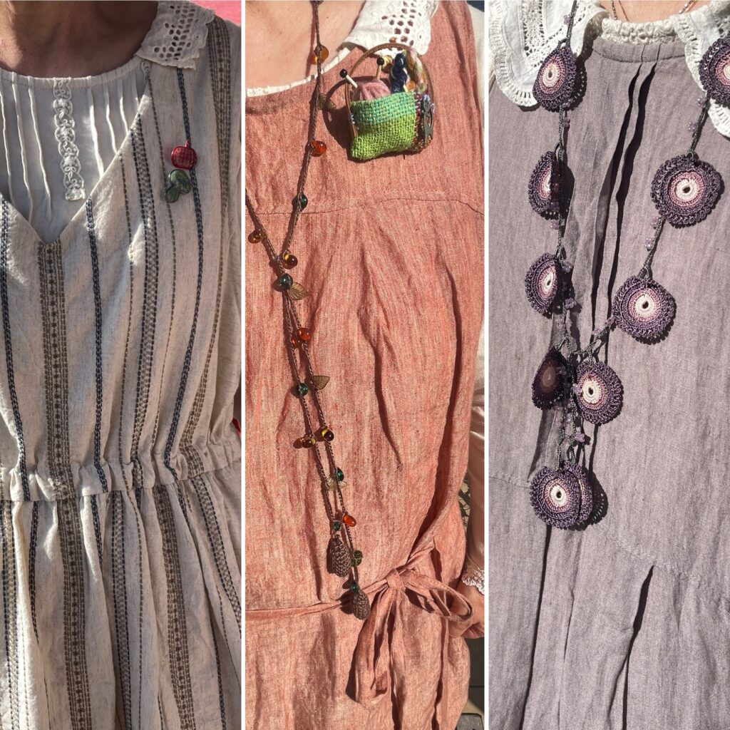 編み編みクラブのメンバーさん、私を含め三人申し合わせたように襟付きブラウスが同じでした。