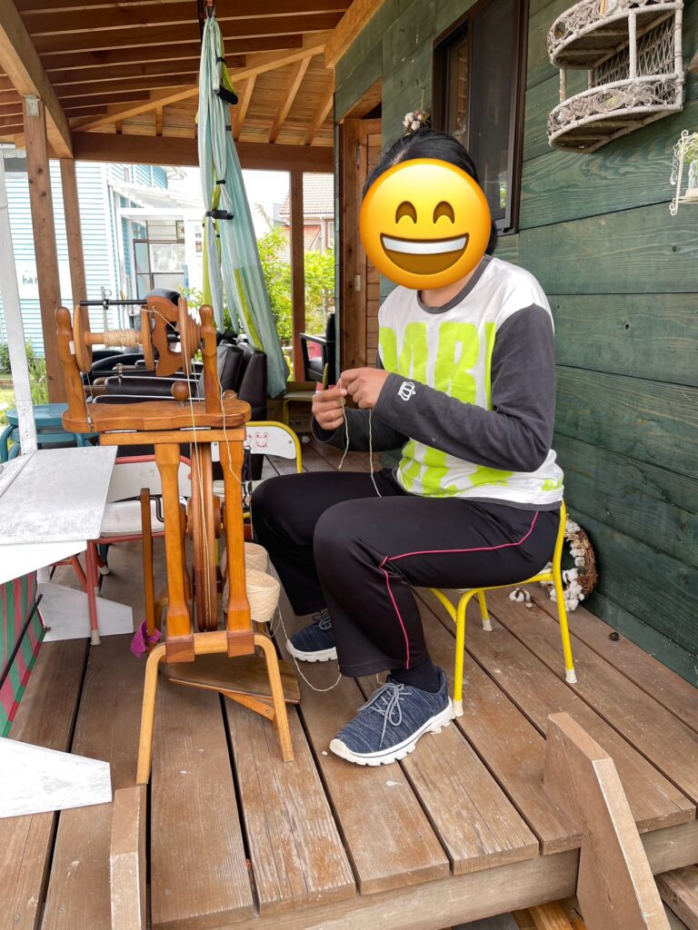 テコポコの皆さんが綿小屋で糸紡ぎをしてくださいました。
