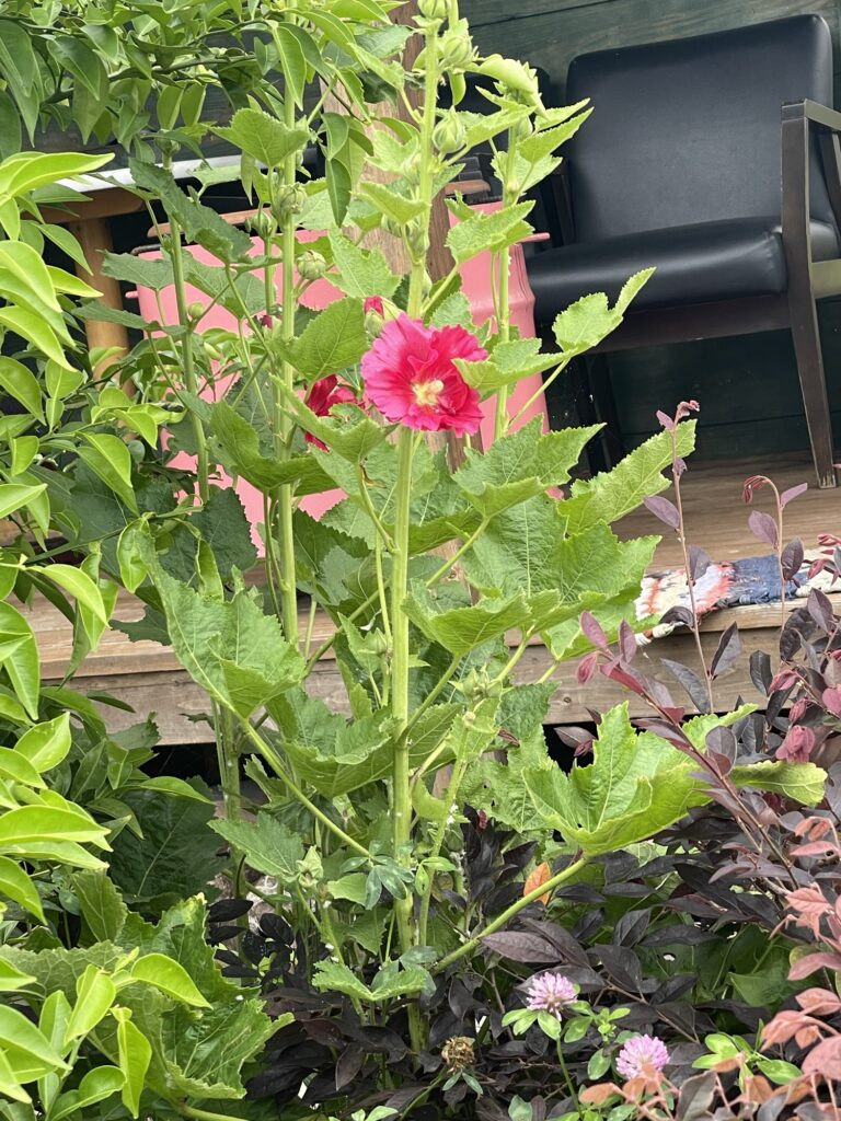 去年種を植えたホリホックも真っ赤なお花が咲いてました。