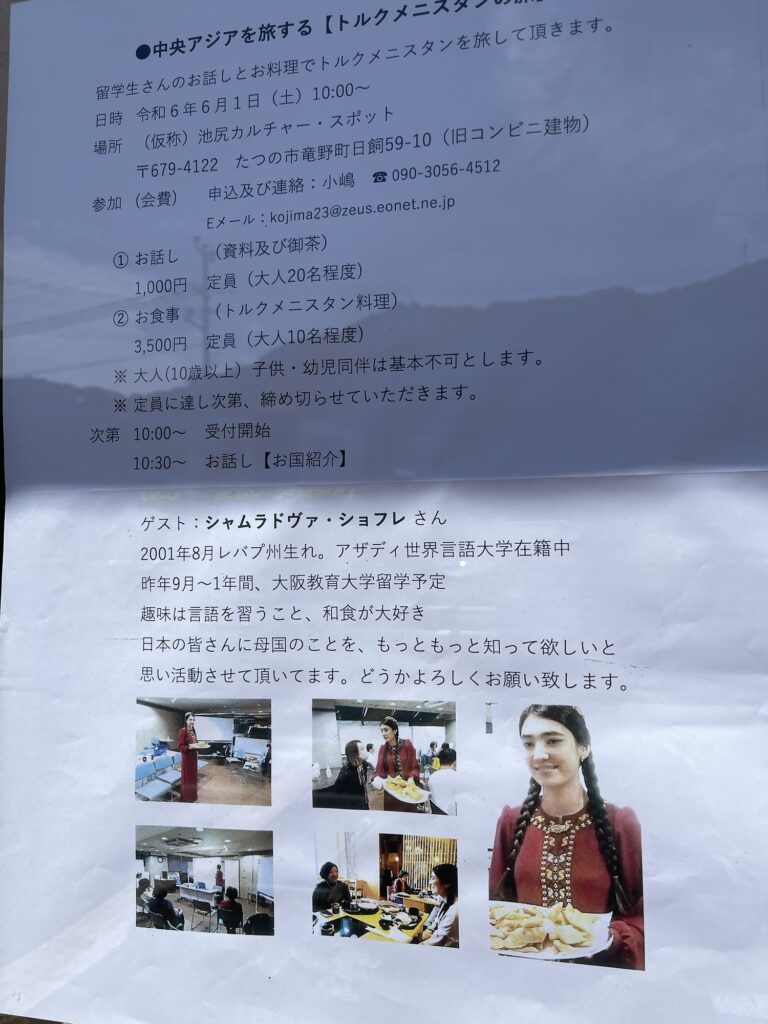 トルクメニスタンから大阪教育大学に留学されているショフレさんの講演会が龍野で開催されました。