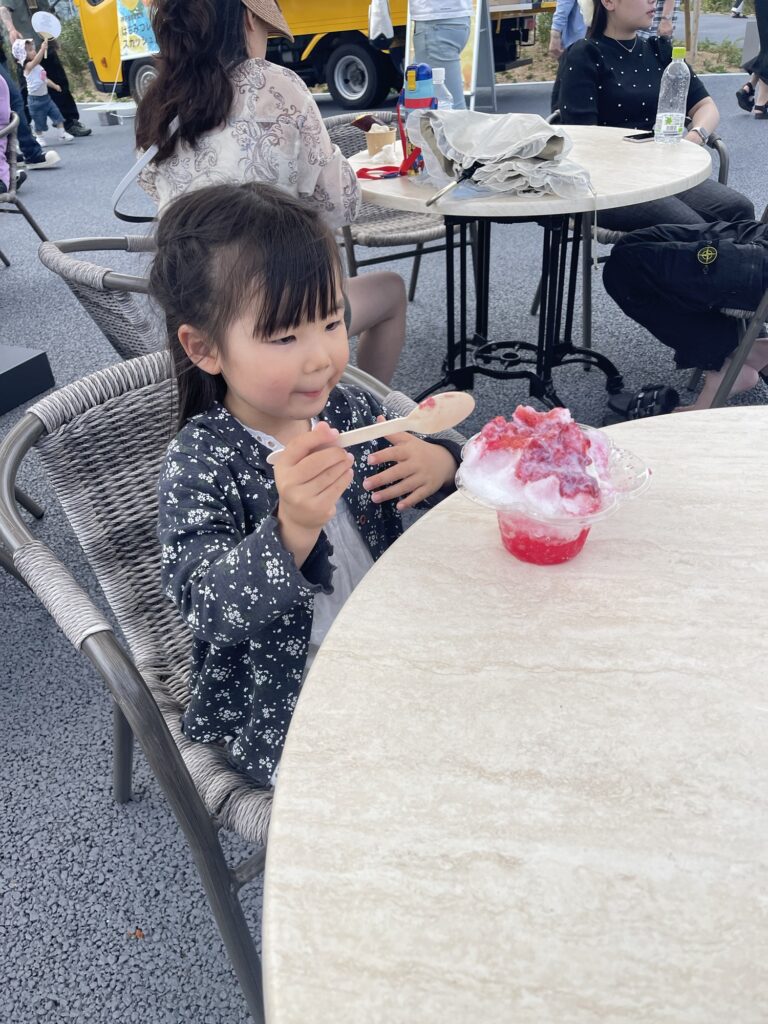 いっぱい遊んで喉が渇いたので、かき氷。