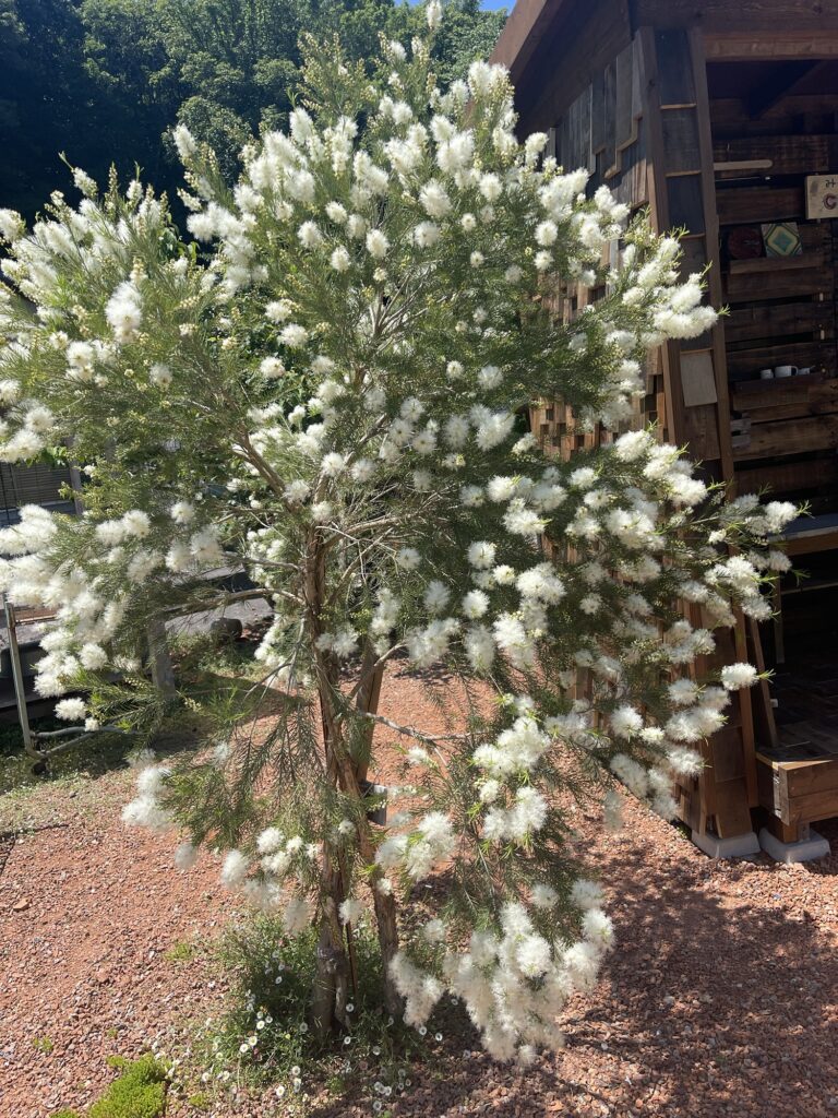 3年目のメラリューカ。今年は白いお花でいっぱいになりました。
