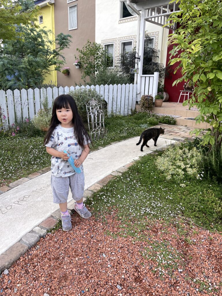 夕方子供達が帰ってきたてお庭で遊んでます