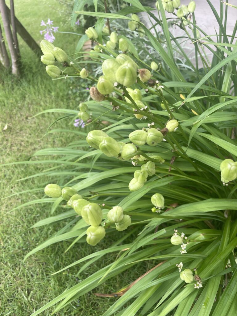 黄色い百合のようなヘメロカリスのお花が咲き終わって、種ができています。