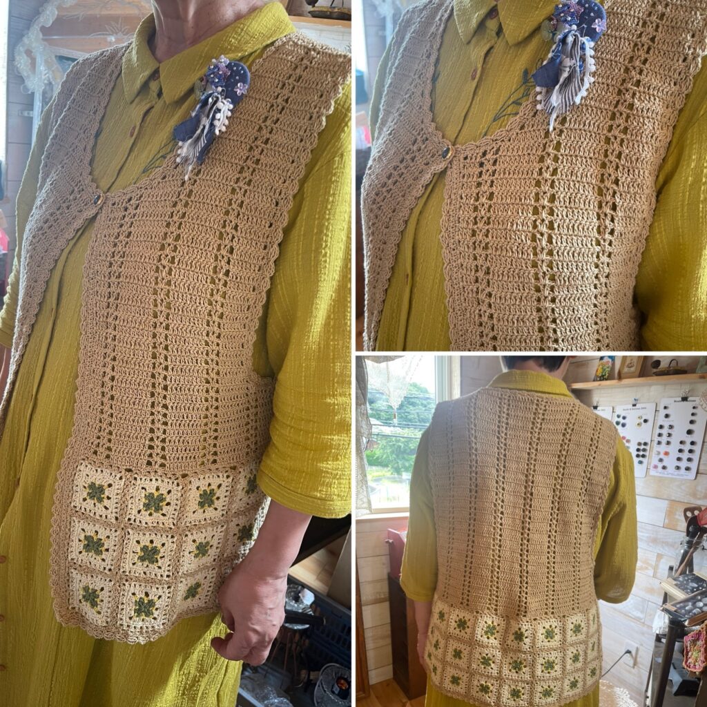 世界に一つのとっても素敵なモチーフ編みのベストが完成しましたね。
