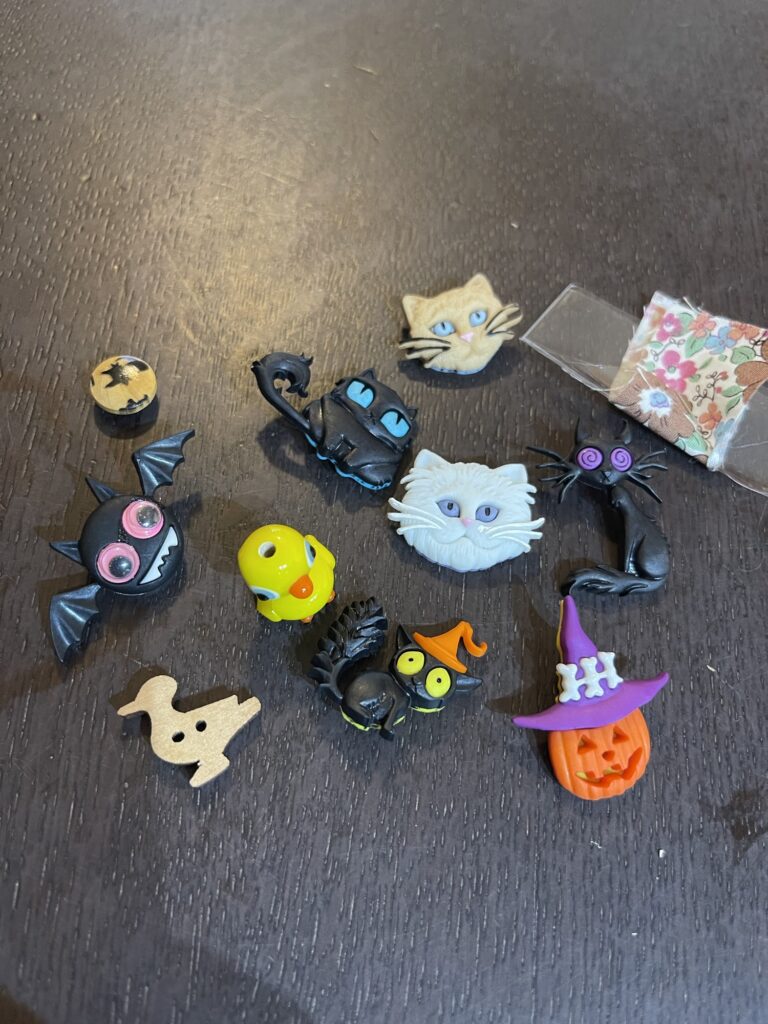 10個で100円。子供達の服や髪留めなどに付けたいな。