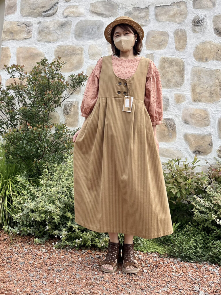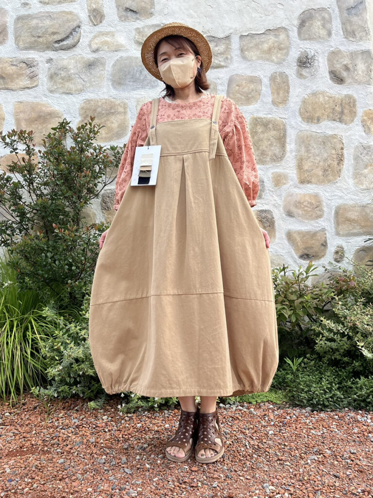 まずはこちら。裾にゴムがちょこっと入ってかわいい形のジャンパースカート!