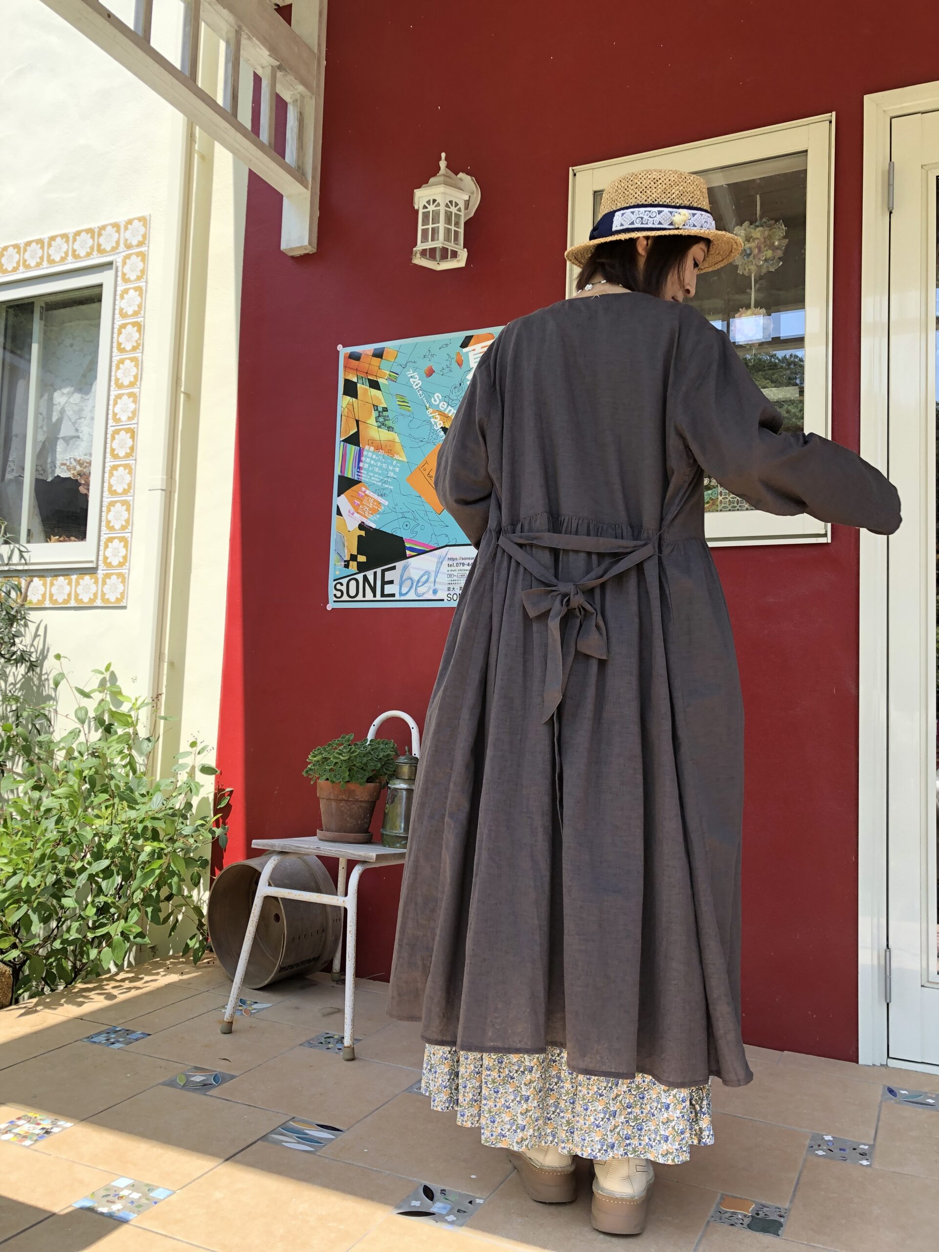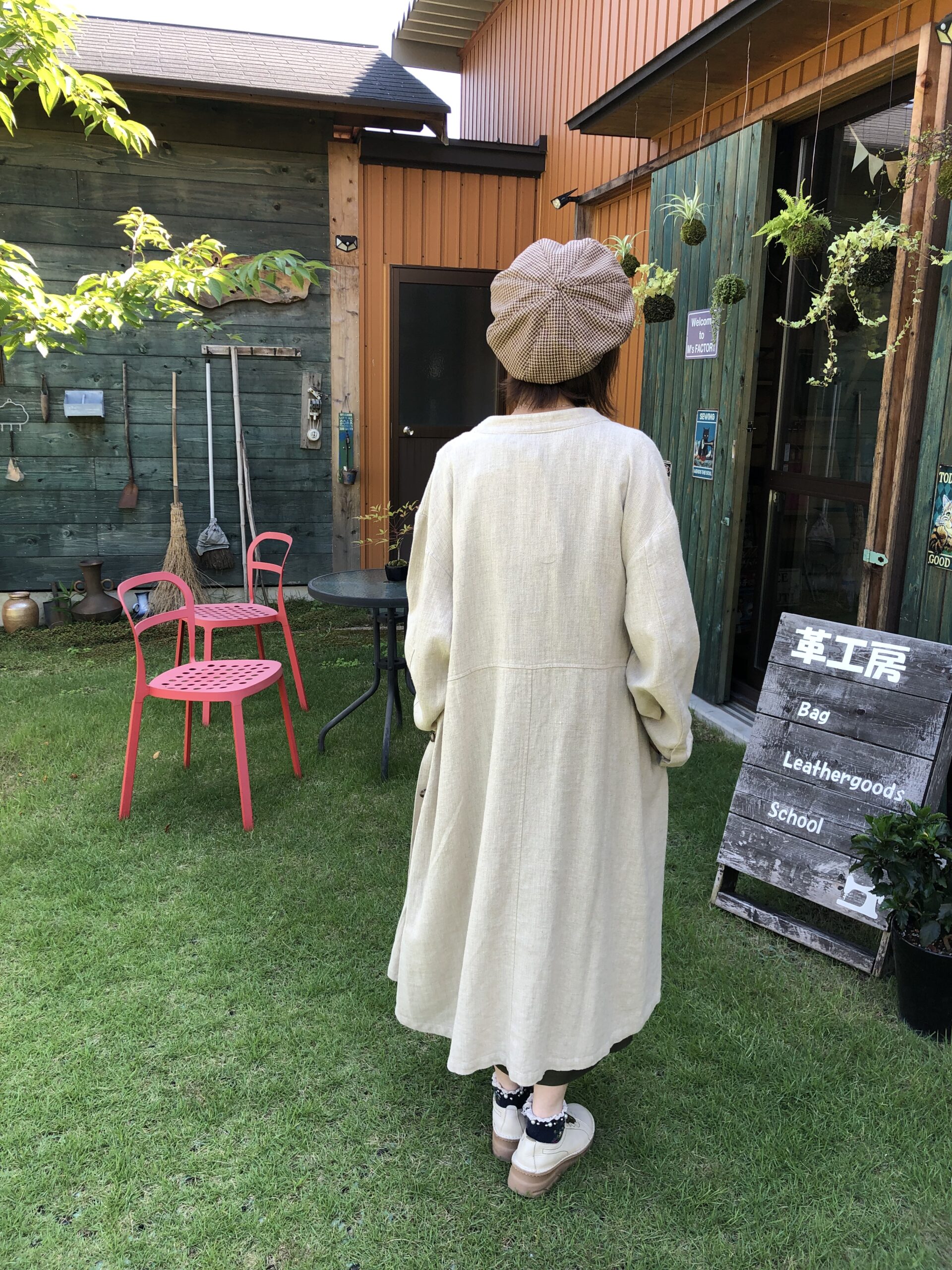 今回人気もののひとつ、スリットの入ったワンピースに、秋から真冬でも活躍してくれる重ね着にぴったりなリネンのワンピースを羽織ってみました。