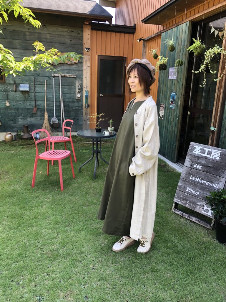 私はこちらの綿麻ワンピースが気になり着てみました。色々な着方が楽しめそう☆