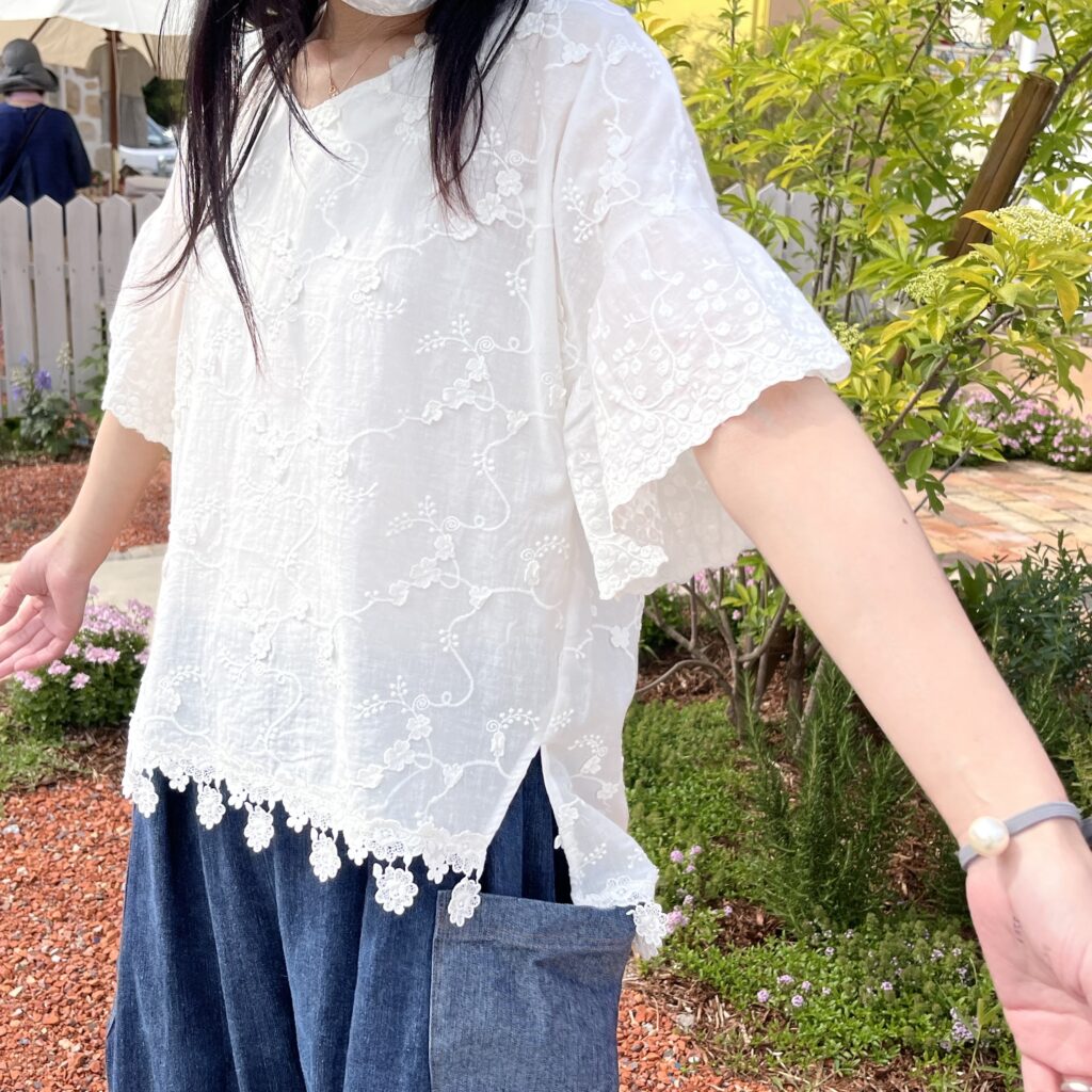 刺繍七分袖Tシャツ¥2,420が半額になっちゃいます!!🥰