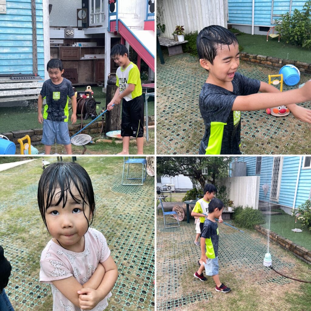 水遊びの道具を買ってもらったのか、プシューっと飛ばして大はしゃぎ。