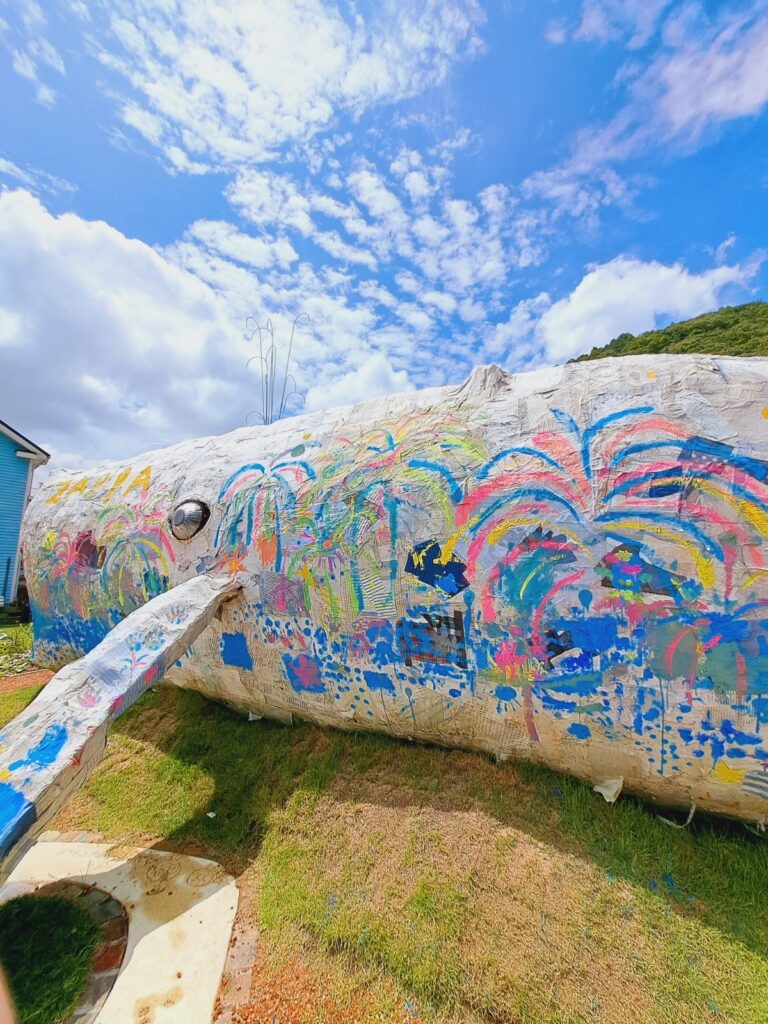 ザッパ村の真ん中に位置する巨大くじら。なんと全長12,7mもあります!