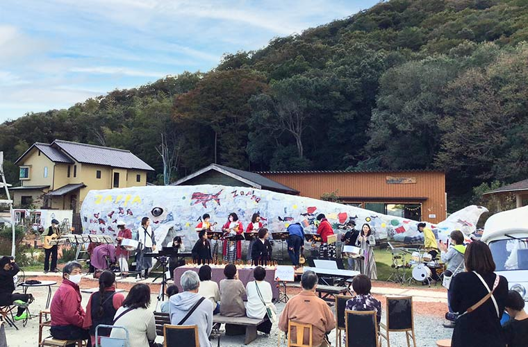 お米祭りという毎年春分の日に開催されるイベントでは、協賛会社さんのロゴをくじらの体にはりつけています。
