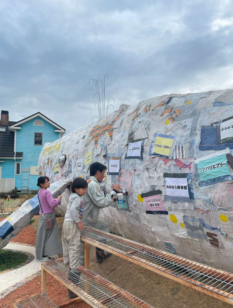 ここを訪れたあなたが、気軽に布を貼って、それがくじらの体の一部になって、ずっとあなたの思い出の場所になりますように。