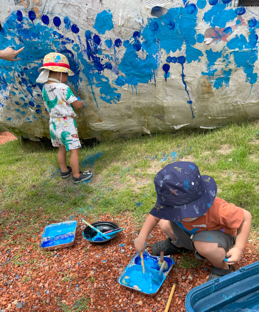 こどもも遊ばせながらのくじらづくり。ちょこまかちょこまか動き回るしややこしかったけど、今となってはいい思い出(^^)