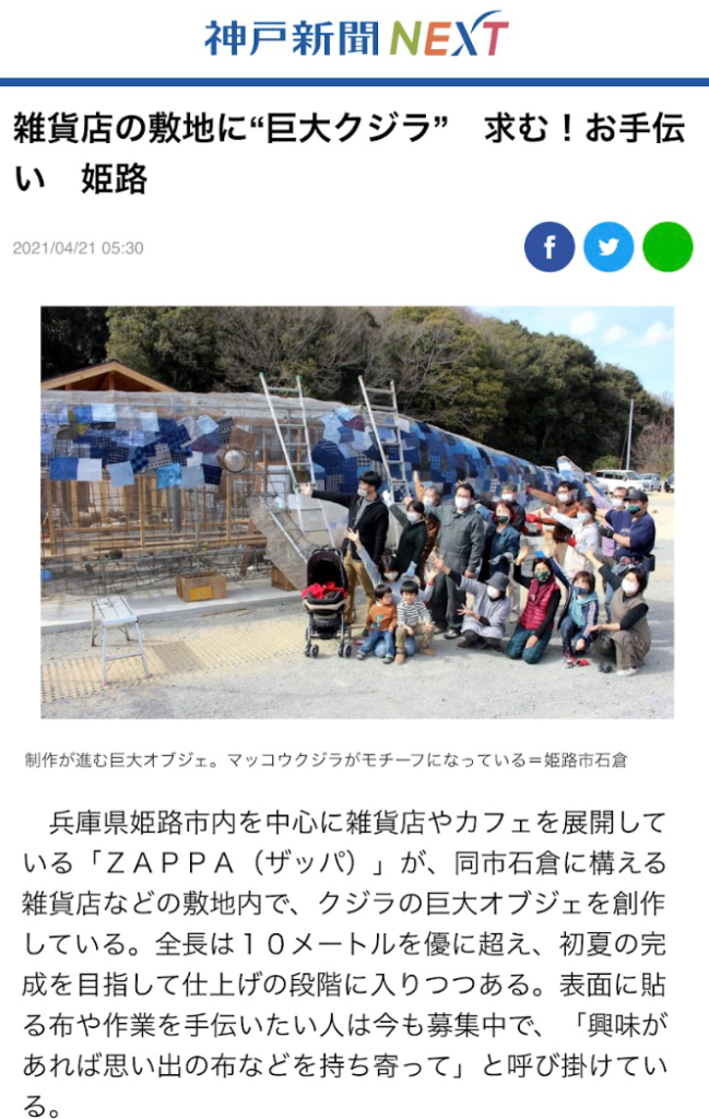 ものづくりが大好きで始めたザッパ村、この先もずっとずっと作り続けたいな、という思いの象徴の「クジラダファミリア」です。